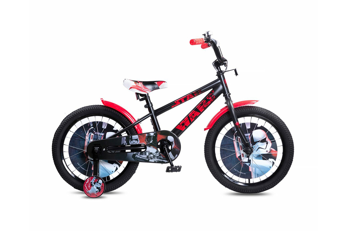 Бренд NOVATRACK Модель DISNEY Star Wars Год 2020 Материал рамы Сталь (Hi-Ten) Тип вилки Жесткая (сталь) Диаметр колес 18" Тормоза Ножной ( Coaster brake) Кассета Free Wheel Количество скоростей 1 Комплектация Защитная накладка на руле и выносе,Пластиковые крылья,Вставки в колеса с рисунком,Звонок,Защита цепи,Дополнительные колеса -