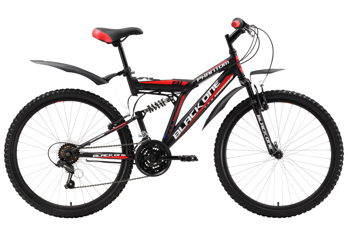 Горный велосипед Black One Phantom – двухподвес на стальной раме с ободными тормозами. Этот тормоз простой в обслуживании и эффективный в эксплуатации, отлично служит на чистых дорогах. При желании эксплуатировать велосипед на грязных и заснеженных дорогах, можно выбрать вариант этого двухподвеса с механическим дисковым тормозом - Black One Phantom Disc. А так же, аналог этого велосипеда на лёгкой алюминиевой раме – двухподвес Black One Descender Disc. Black One Phantom оборудован 18 скоростями и комплектующими Shimano, которые чётко выполняют переключения. Быстросъёмные пластиковые крылья и подножка в комплекте – не дорогое, но полезное оборудование.