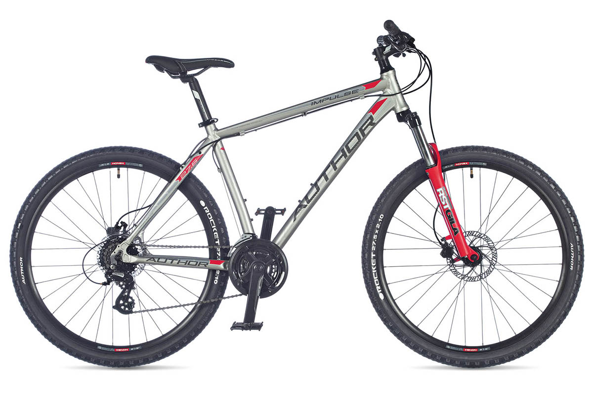 Author Impulse (2019) - горный велосипед на колёсах 27.5-дюймов. Алюминиевая рама, амортизационная вилка RST, гидравлические дисковые тормоза Tektro и 24 скорости - все, что нужно начинающему велосипедисту.