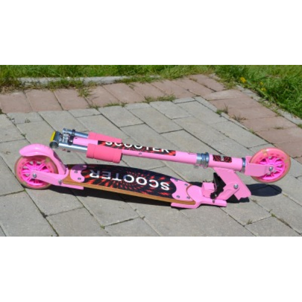 Самокат SCOOTER с деревянной декой - новинка этого года! Красивый розовый самокат со светящимися колесами подойдет для детей и подростков. Дека изготовлена из настоящего 7-ми слойного ламината позволит вам насладиться расслабленной ездой на новом самокате. Самокат имеет удобную и легкую систему складывания.