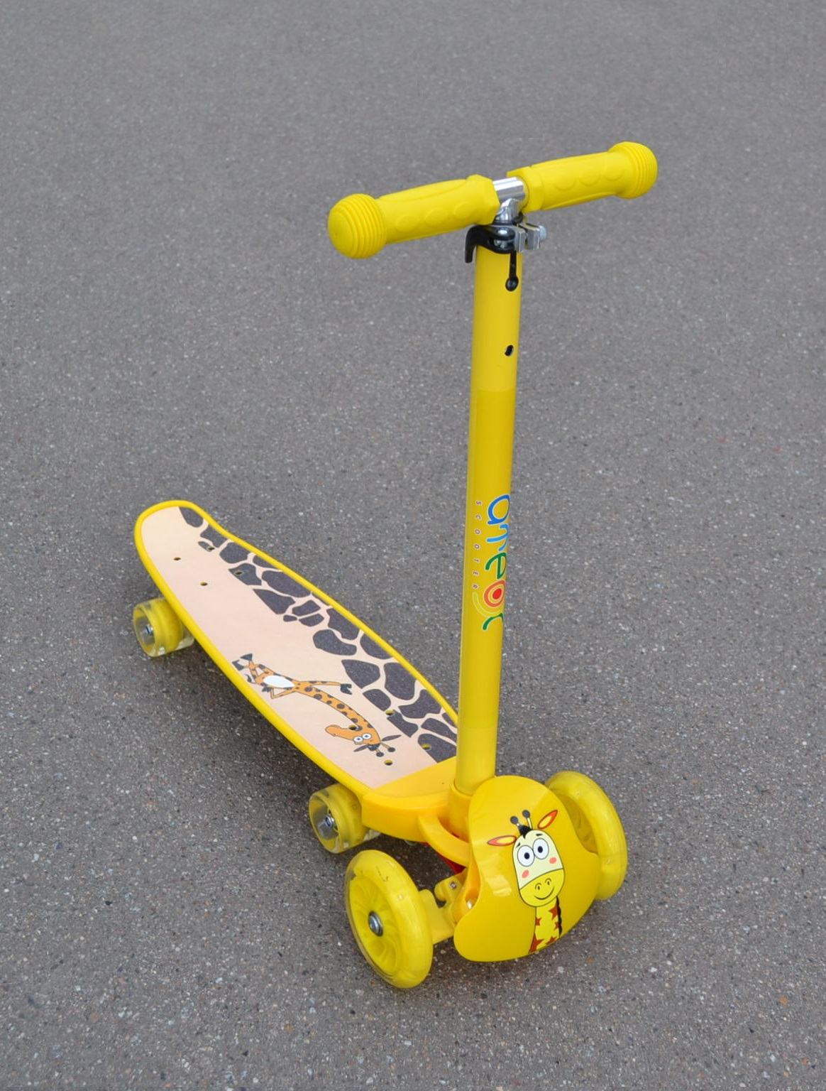 Бренд ATEOX Модель , ЦВЕТ ЖЕЛТЫЙ Амортизатор нет Материал алюминий и пластик Высота руля 65-90 см Диаметр колес 120 мм Длина платформы 55 см Грипсы резиновые Максимальная нагрузка 60 кг Ширина платформы 15.5 см Клиренс 10 см Ширина руля 25 см Вес 3.2 кг Подножка нет Ремень для переноски нет Колёса полиуретановые,светящиеся -